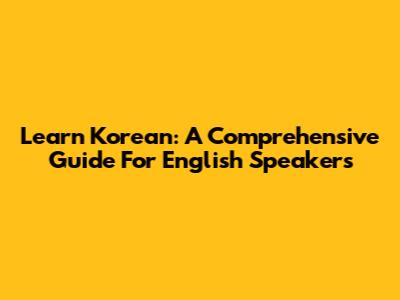 Learn Korean: A Comprehensive Guide For English Speakers