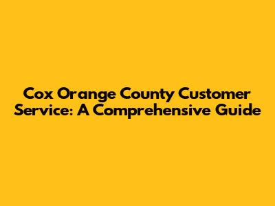 Cox Orange County Customer Service: A Comprehensive Guide