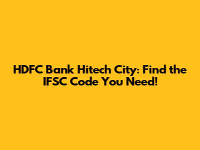 Hey guys! Are you looking for the IFSC code for the HDFC Bank branch in Hitech City? You've come to the right place! Finding the correct IFSC code is super important for online transactions like NEFT, RTGS, and IMPS. It ensures your money goes to the right account, avoiding any frustrating delays or mishaps. Let's dive into everything you need to know about the IFSC code for HDFC Bank Hitech City. Stick around, and we'll make sure you get all the details right!