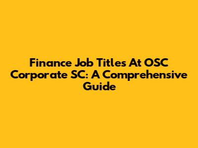 Finance Job Titles At OSC Corporate SC: A Comprehensive Guide