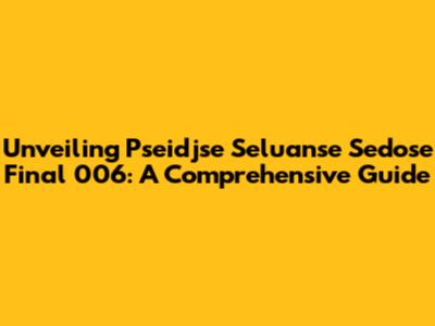 Unveiling Pseidjse Seluanse Sedose Final 006: A Comprehensive Guide