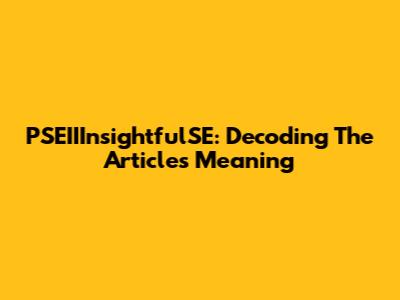 PSEIIInsightfulSE: Decoding The Article's Meaning