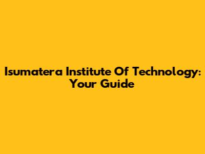 Isumatera Institute Of Technology: Your Guide