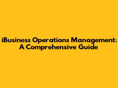 Hey guys! Ever wondered how successful online businesses keep their engines running smoothly? It's all about iBusiness Operations Management! This is the backbone of any thriving digital venture, ensuring everything from customer service to order fulfillment is top-notch. In this comprehensive guide, we'll dive deep into the world of iBusiness operations management, exploring its key components, benefits, and how you can implement it effectively in your own business. So, buckle up and let's get started!