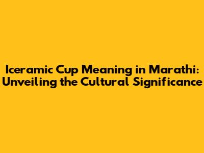 Iceramic Cup Meaning In Marathi: A Comprehensive Guide