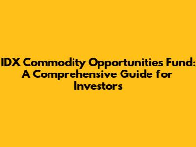 Hey everyone! Today, we're diving deep into something that's been buzzing in the investment world: the IDX Commodity Opportunities Fund. If you're looking to diversify your portfolio and potentially tap into the exciting world of commodities, you've come to the right place. We'll explore what this fund is all about, what it invests in, and whether it could be a good fit for you. So, buckle up, because we're about to embark on a journey through the IDX Commodity Opportunities Fund, breaking down the essentials in a way that's easy to understand. Let's get started, shall we?