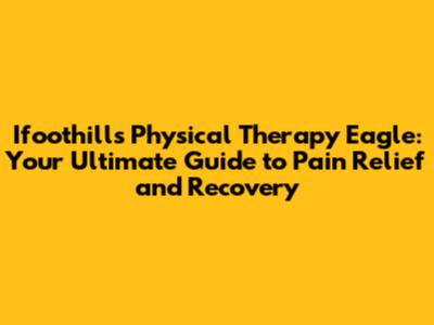 Ifoothills Physical Therapy Eagle: Your Ultimate Guide to Pain Relief and Recovery