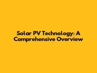Solar PV Technology: A Comprehensive Overview