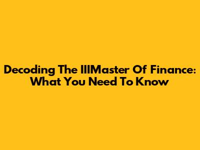 Decoding The IIIMaster Of Finance: What You Need To Know