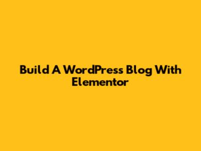 Build A WordPress Blog With Elementor