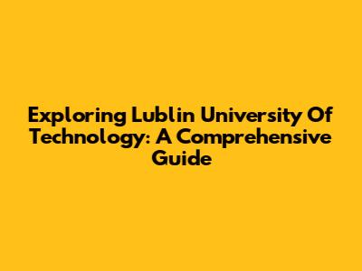 Exploring Lublin University Of Technology: A Comprehensive Guide