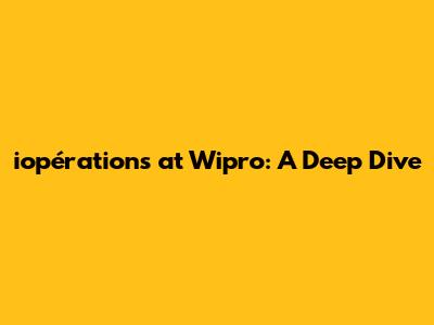 Iopérations At Wipro: A Deep Dive
