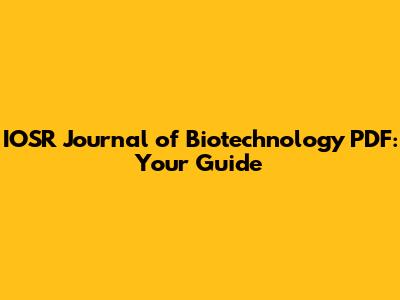 Accessing the IOSR Journal of Biotechnology in PDF format is generally straightforward, thanks to its open-access nature. Here’s a step-by-step guide to help you find and download the articles you need: