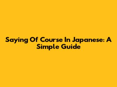 Saying "Of Course" In Japanese: A Simple Guide