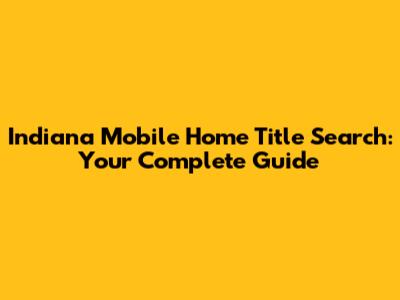 Indiana Mobile Home Title Search: Your Complete Guide