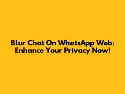 Blur Chat On WhatsApp Web: Enhance Your Privacy Now!