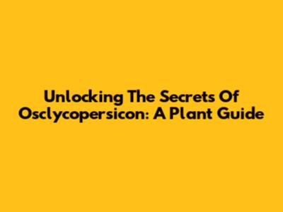 Unlocking The Secrets Of Osclycopersicon: A Plant Guide