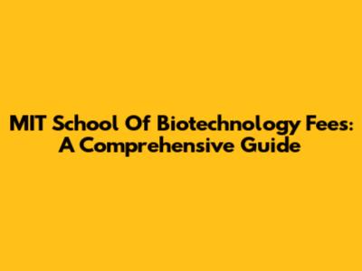 MIT School Of Biotechnology Fees: A Comprehensive Guide