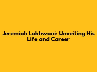 Hey everyone! Today, we're diving deep into the life and times of Jeremiah Lakhwani. I'm stoked to bring you the lowdown on this fascinating individual. From his early life to his career highs, we'll cover it all. So, buckle up, because this is going to be an exciting ride! Let's get started, shall we?