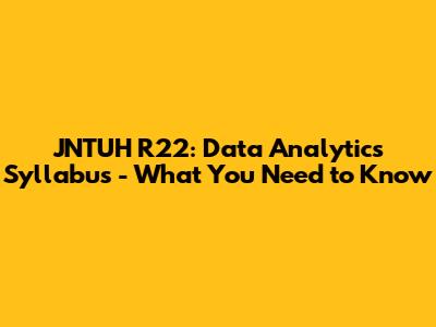 Hey guys! Are you diving into the world of Data Analytics under the JNTUH R22 regulations? Awesome! This field is super exciting, and having a solid grasp of the syllabus is your first step to success. Let's break down the JNTUH R22 Data Analytics syllabus, making sure you know exactly what's coming your way. We'll cover the key subjects, what you'll learn in each, and how to make the most of your studies. So, buckle up, and let's get started!