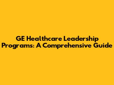 GE Healthcare Leadership Programs: A Comprehensive Guide