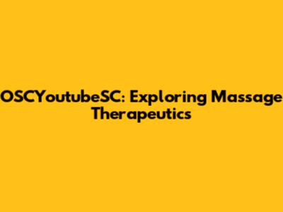 OSCYoutubeSC: Exploring Massage Therapeutics