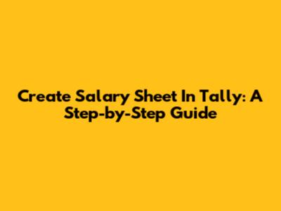 Create Salary Sheet In Tally: A Step-by-Step Guide
