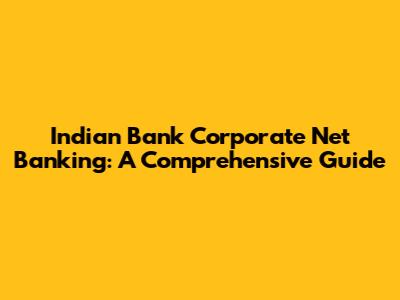 Indian Bank Corporate Net Banking: A Comprehensive Guide