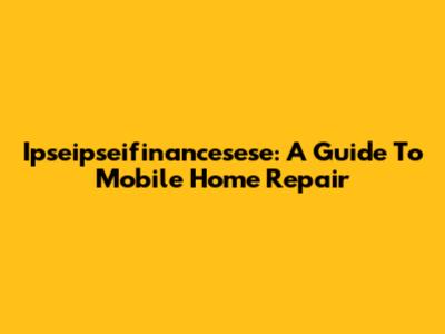Ipseipseifinancesese: A Guide To Mobile Home Repair
