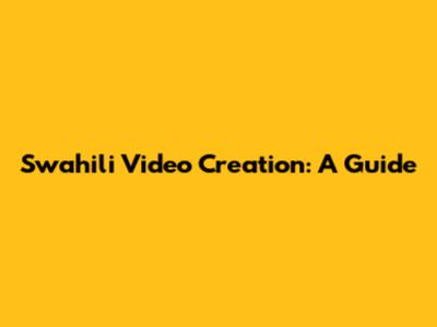 Swahili Video Creation: A Guide