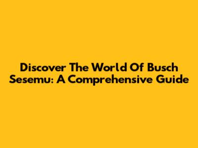 Discover The World Of Busch Sesemu: A Comprehensive Guide