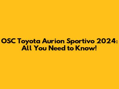 OSC Toyota Aurion Sportivo 2024: Review, Specs, & More!