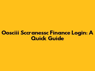 Oosciii Sccranessc Finance Login: A Quick Guide
