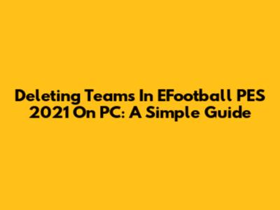 Deleting Teams In EFootball PES 2021 On PC: A Simple Guide