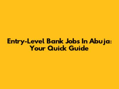 Entry-Level Bank Jobs In Abuja: Your Quick Guide
