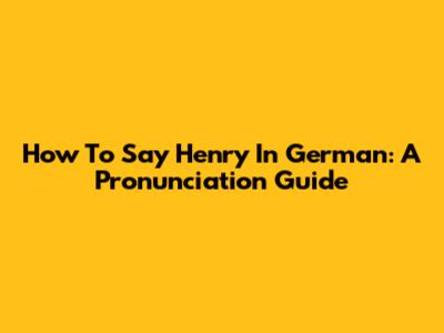 How To Say "Henry" In German: A Pronunciation Guide