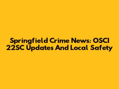 Springfield Crime News: OSCI 22SC Updates And Local Safety