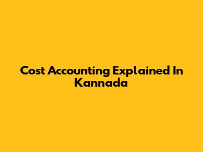 Cost Accounting Explained In Kannada