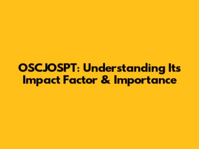 OSCJOSPT: Understanding Its Impact Factor & Importance