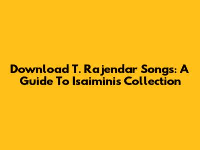 Download T. Rajendar Songs: A Guide To Isaimini's Collection