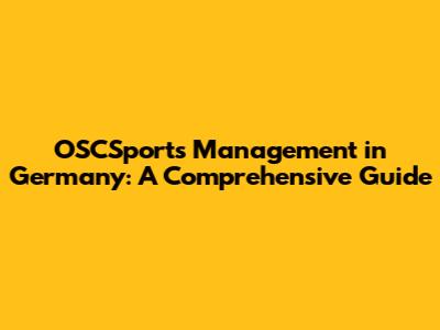 Building a Successful OSCSports Management Career in Germany