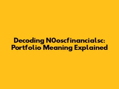 Decoding N0oscfinancialsc: Portfolio Meaning Explained