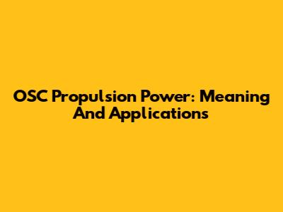 OSC Propulsion Power: Meaning And Applications