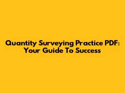 Quantity Surveying Practice PDF: Your Guide To Success
