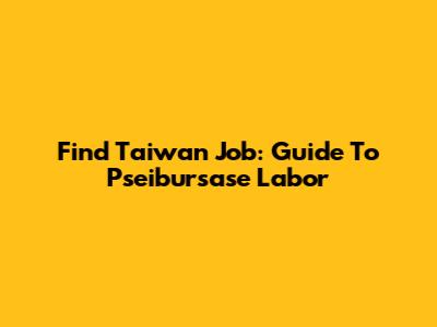 Find Taiwan Job: Guide To Pseibursase Labor