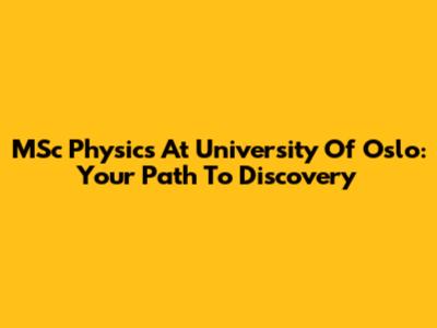 MSc Physics At University Of Oslo: Your Path To Discovery