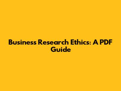 Business Research Ethics: A PDF Guide