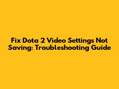 Fix Dota 2 Video Settings Not Saving: Troubleshooting Guide