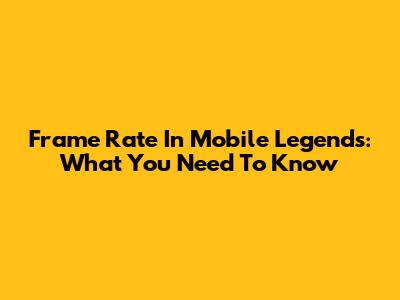 Frame Rate In Mobile Legends: What You Need To Know