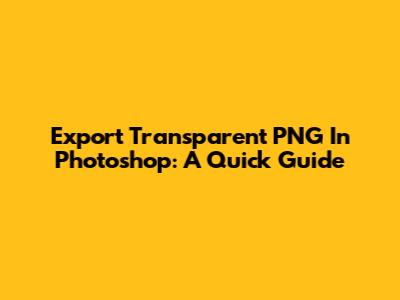Export Transparent PNG In Photoshop: A Quick Guide
